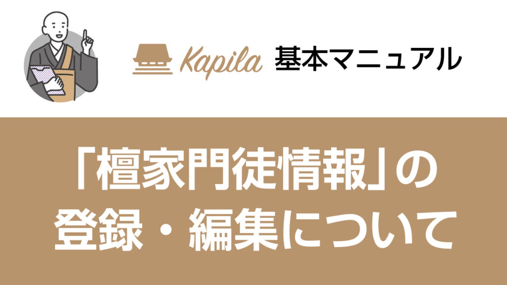 ここでは「檀家・門徒情報」の登録について解説します。 1:登録の仕方 「新規追加」ボタンを押して、檀家情報を入力していきます。 ※メールアドレスも入力して、カピともに招待しましょう。 管理メモ機能を使えば、過去のやり取りのメモや、写真を残して... -